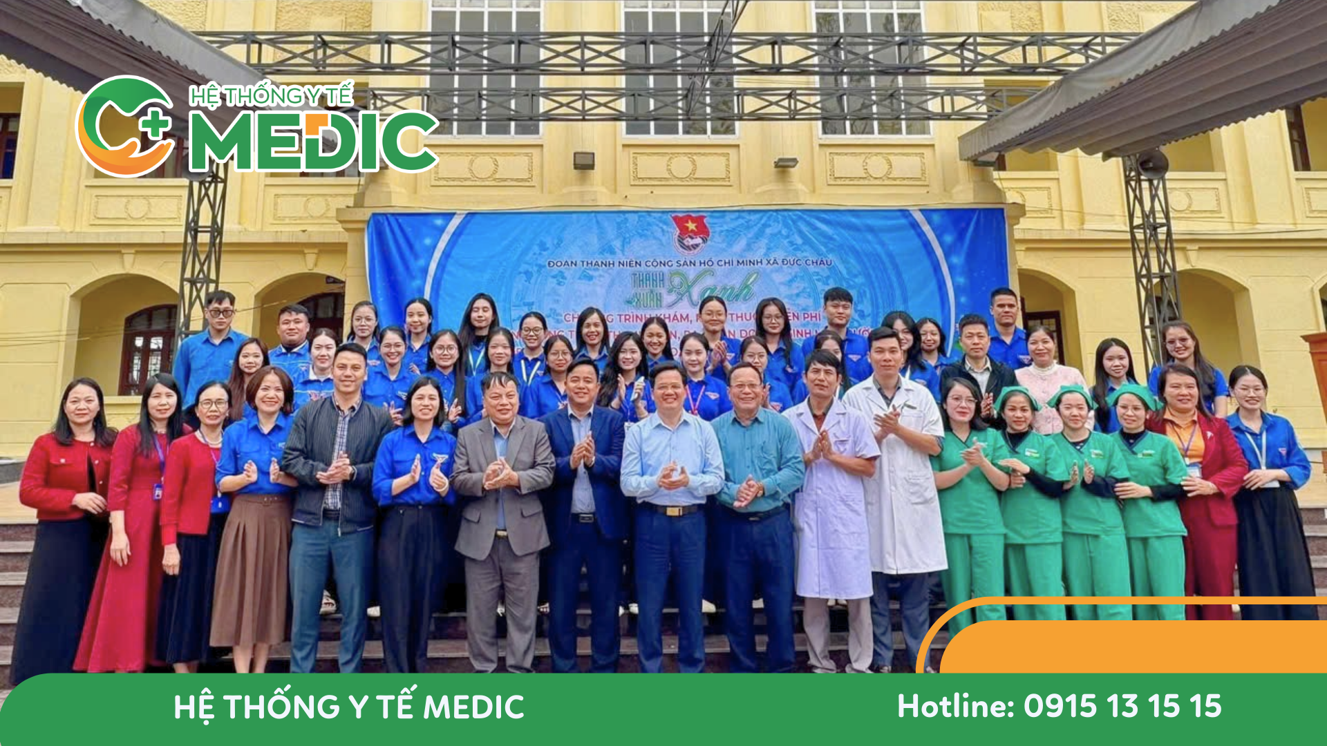 Tham dự chương trình có Bác sĩ Quách Hoàng Thảo – Giám đốc Phòng khám Đa khoa Medic Diễn Châu, cùng đội ngũ bác sĩ, điều dưỡng và nhân viên y tế của phòng khám trực tiếp tham gia thăm khám, tư vấn và cấp phát thuốc miễn phí cho các đoàn viên thanh niên.